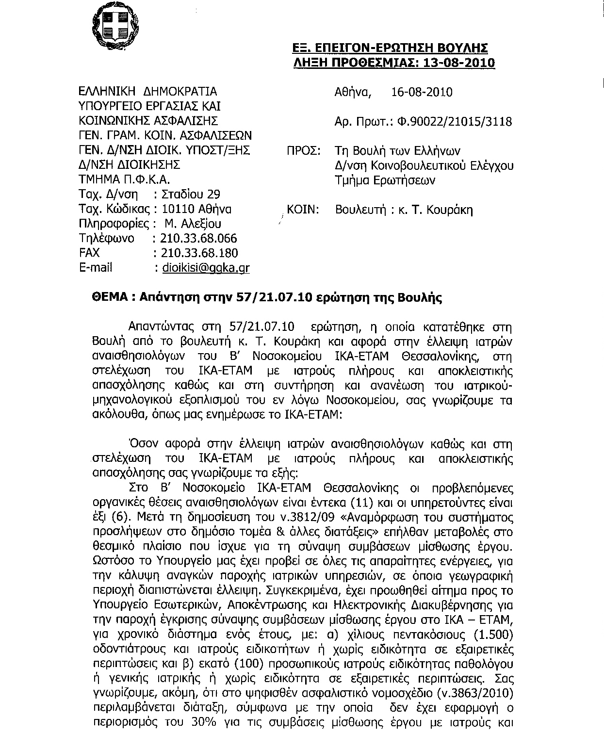 Υπουργούς Υγείας και Κοινωνικής Αλληλεγγύης, Απασχόλησης και Κοινωνικής προστασίας,