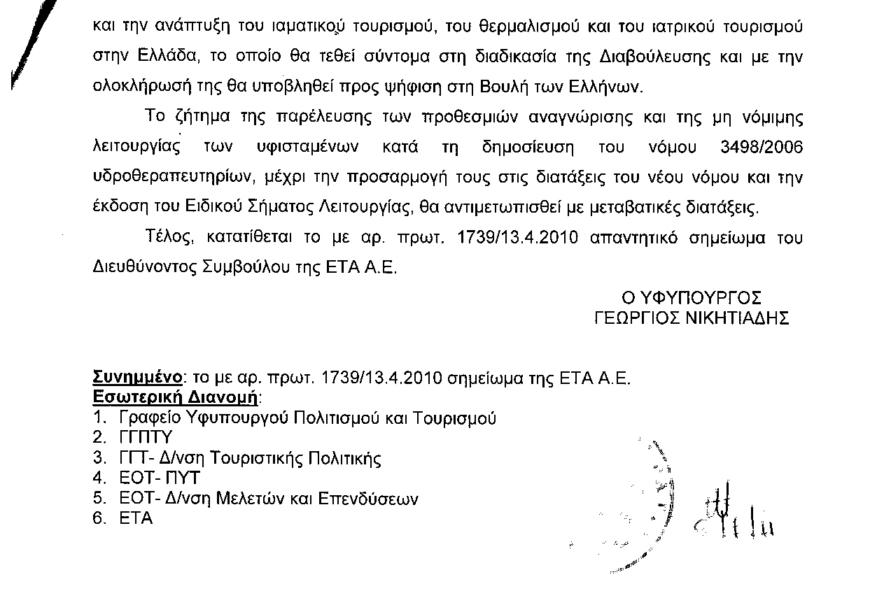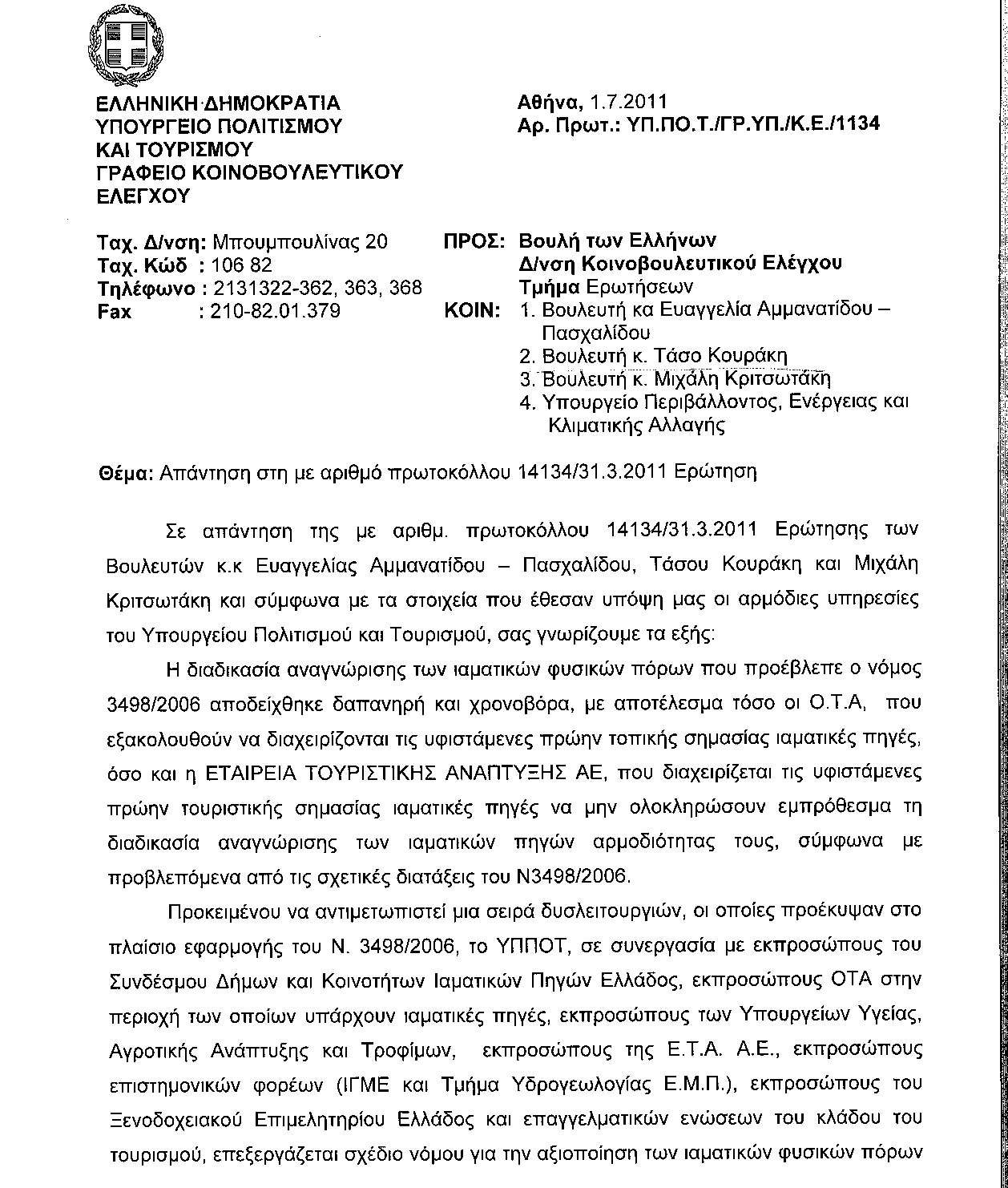 τους κκ. Υπουργούς: • Πολιτισμού και Τουρισμού • Περιβάλλοντος, Ενέργειας και Κλιματικής Αλλαγής