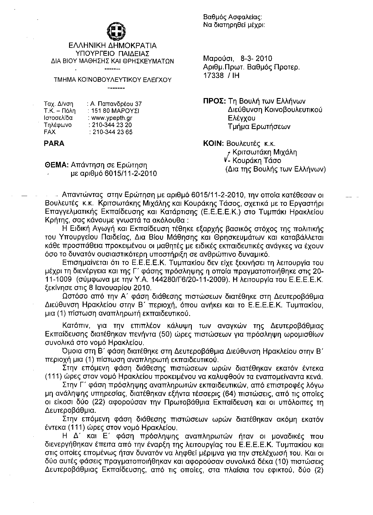 Υπουργό Εθνικής Παιδείας & Θρησκευμάτων