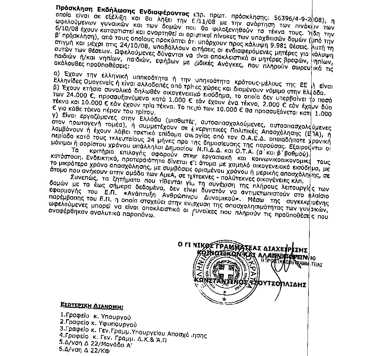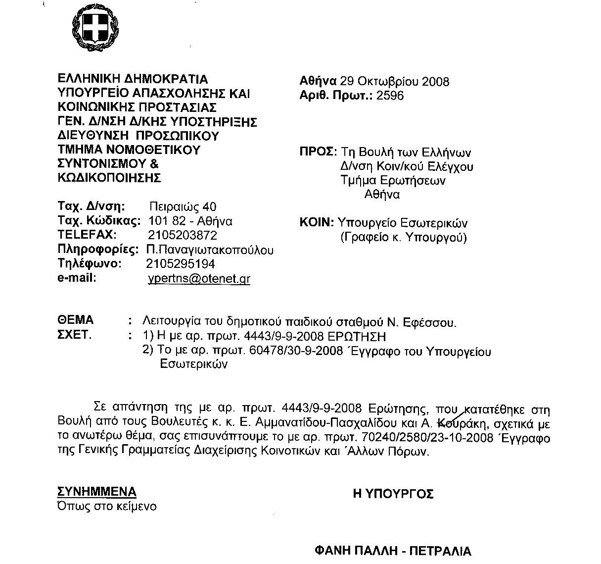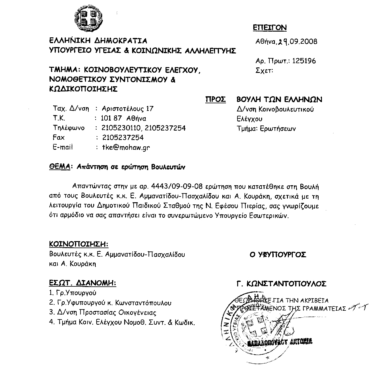 κκ. Υπουργούς: Παιδείας και Θρησκευμάτων, Εσωτερικών
