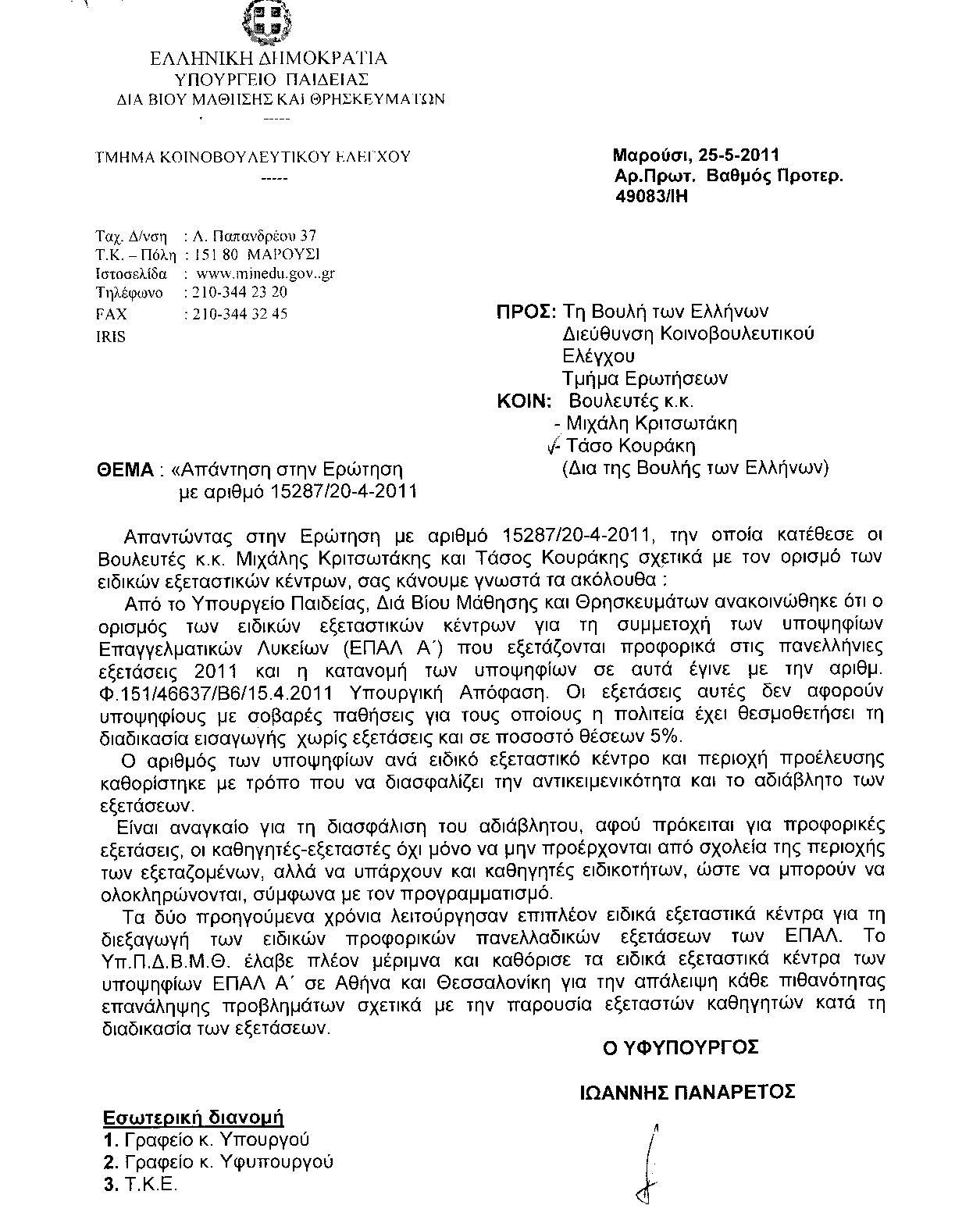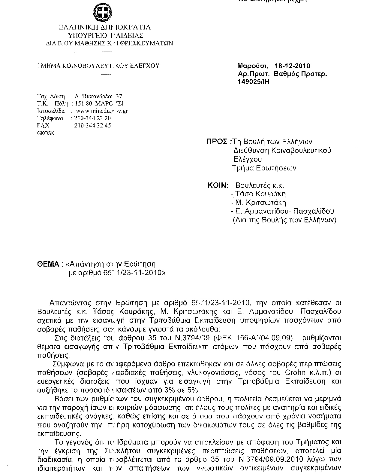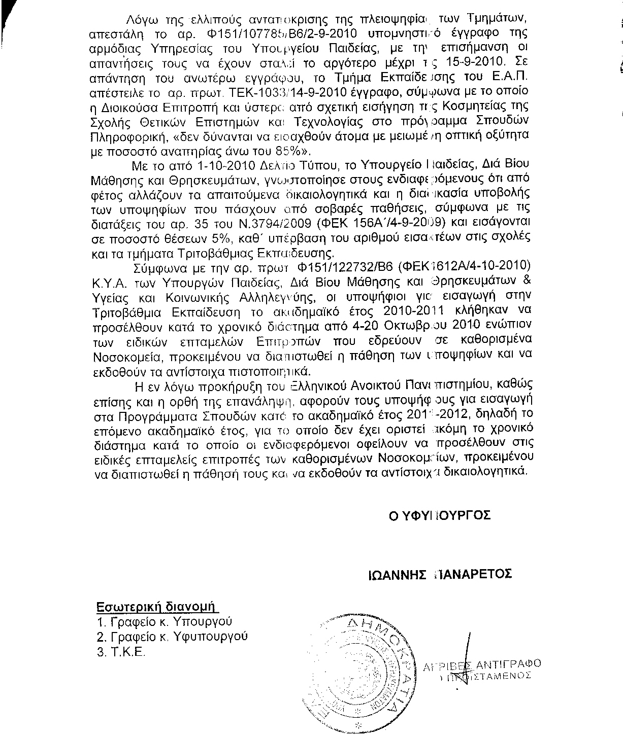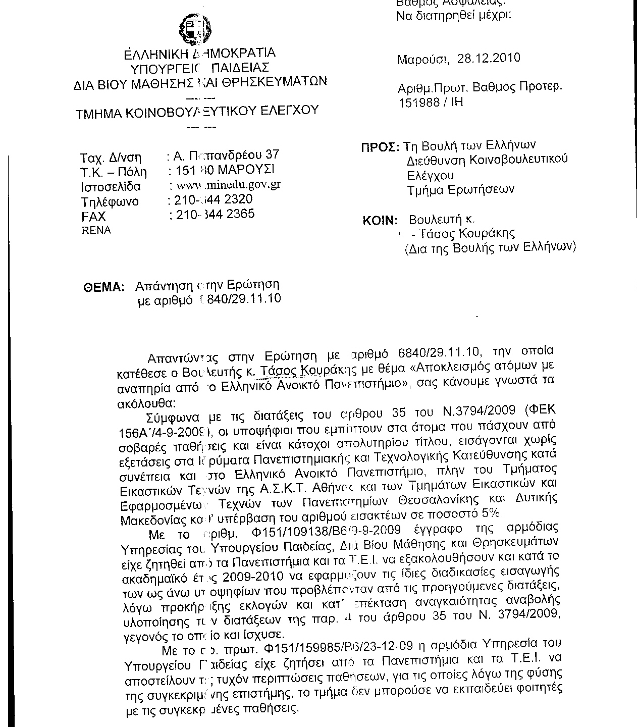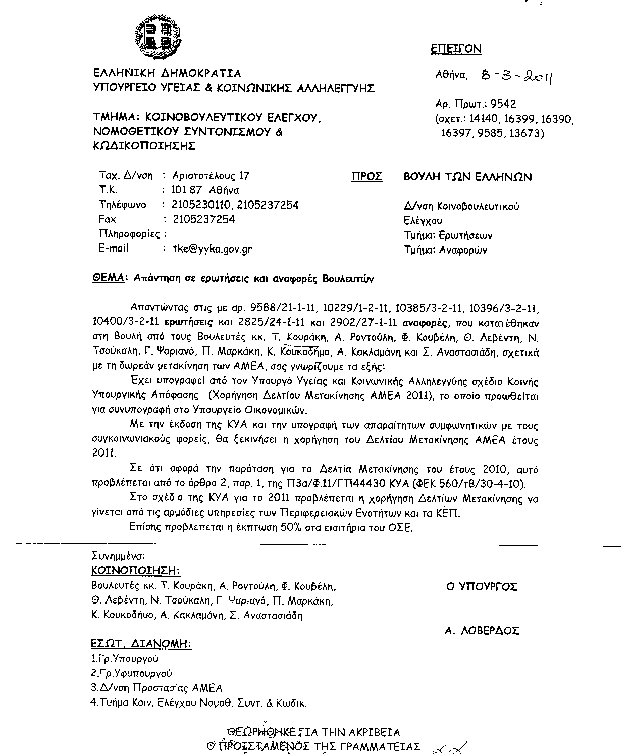 τους Υπουργούς Εργασίας, Κοινωνικής Ασφάλισης και Πρόνοιας - Οικονομικών