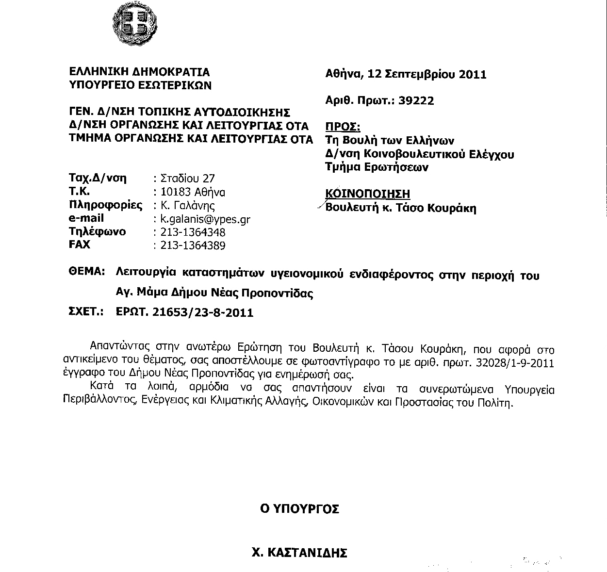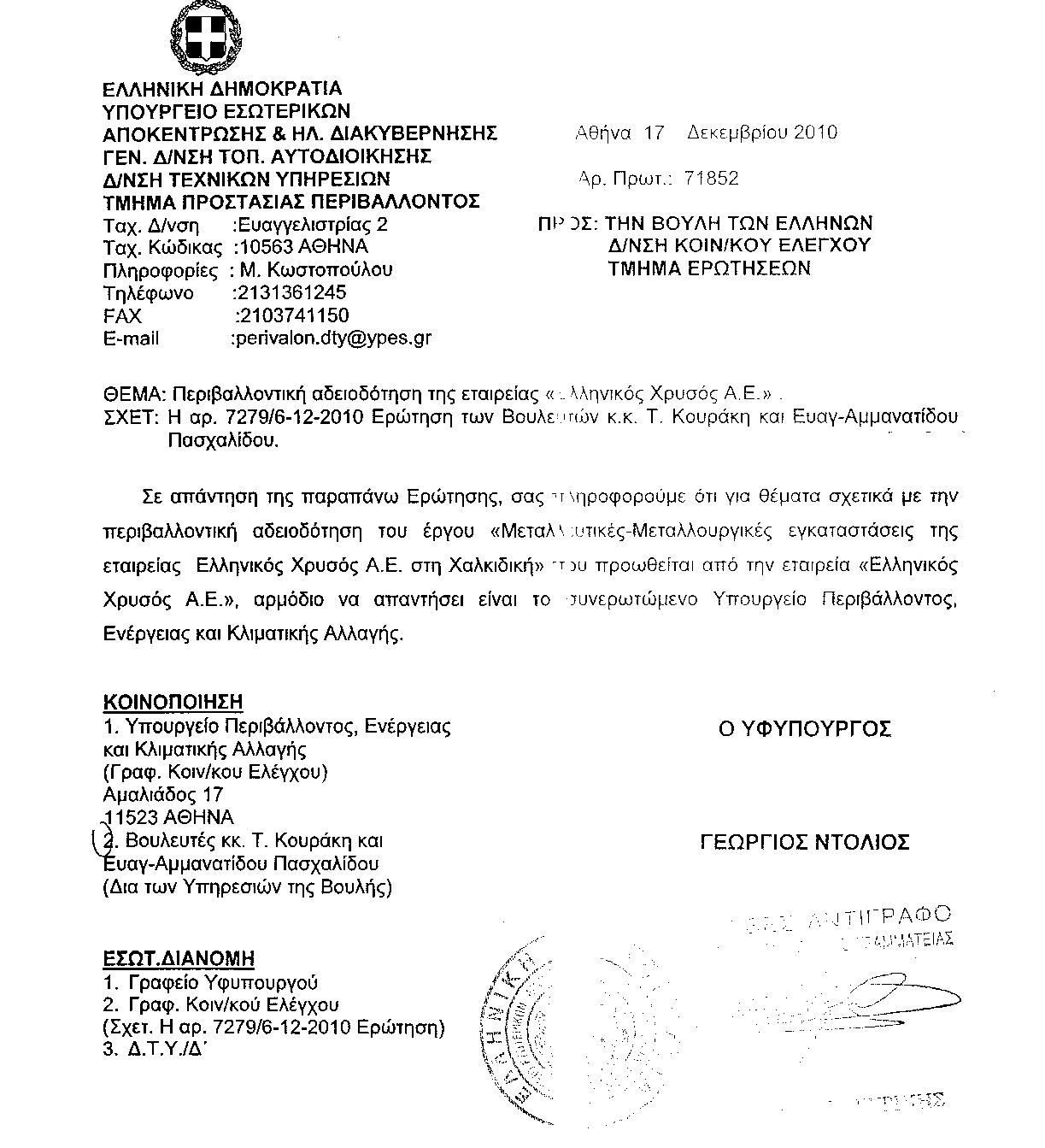 Οι βουλευτές Θεσσαλονίκης του ΣΥ.ΡΙΖ.Α Τ. Κουράκης και Ε. Αμμανατίδου-Πασχαλίδου κατέθεσαν ερώτηση με θέμα την ουσιαστική ακύρωση της δημόσιας διαβούλευσης, πριν από την έκδοση της Άδειας Έγκρισης Περιβαλλοντικών Όρων (ΑΕΠΟ), για το έργο «Μεταλλευτικές- Μεταλλουργικές εγκαταστάσεις της εταιρείας Ελληνικός Χρυσός Α.Ε. στη Χαλκιδική».
