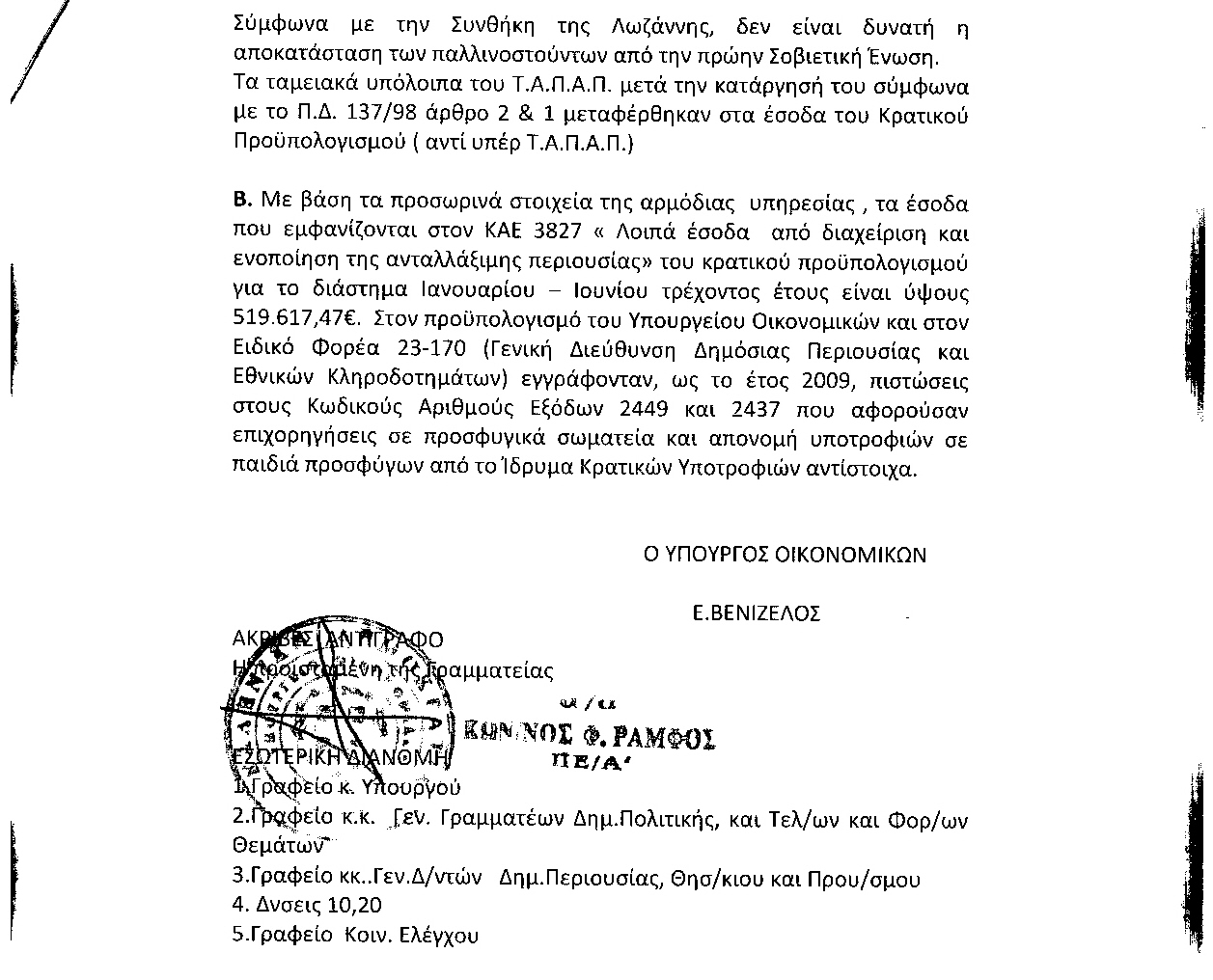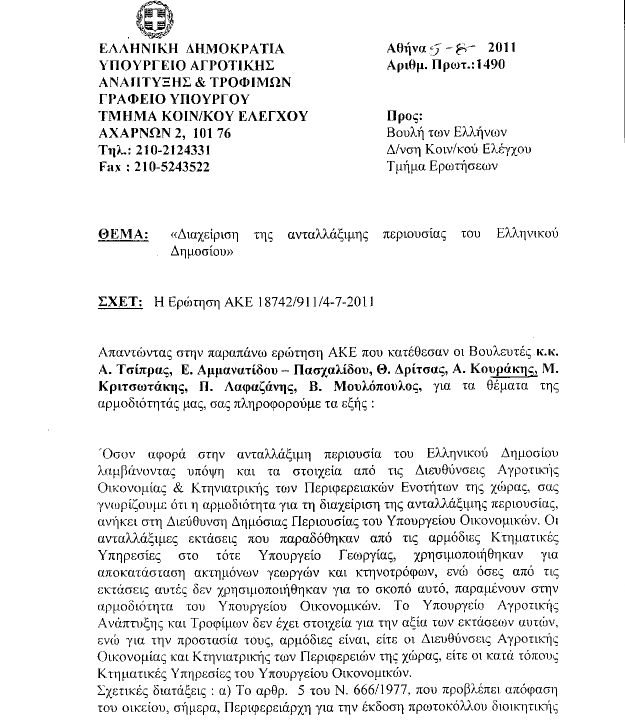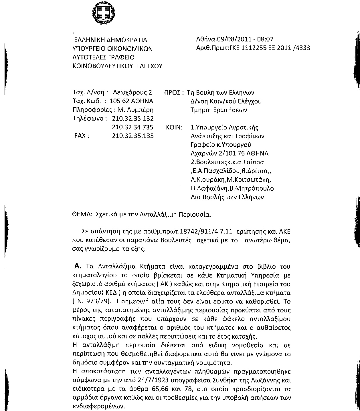 ΠΡΟΣ ΤΟΝ ΥΠΟΥΡΓΟ ΟΙΚΟΝΟΜΙΚΩΝ