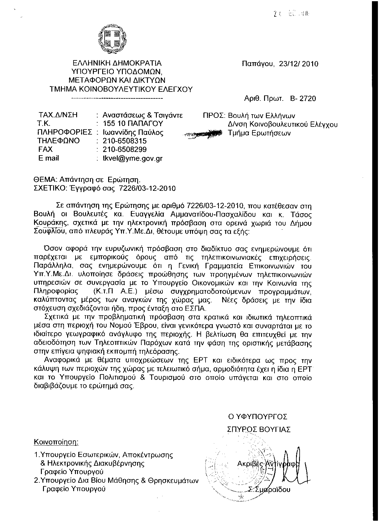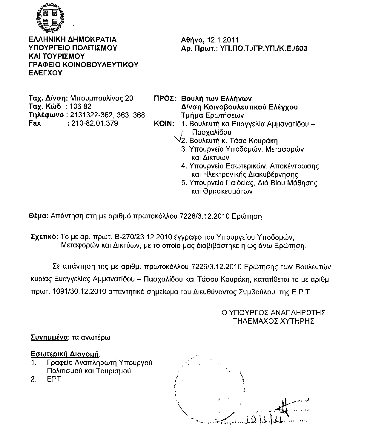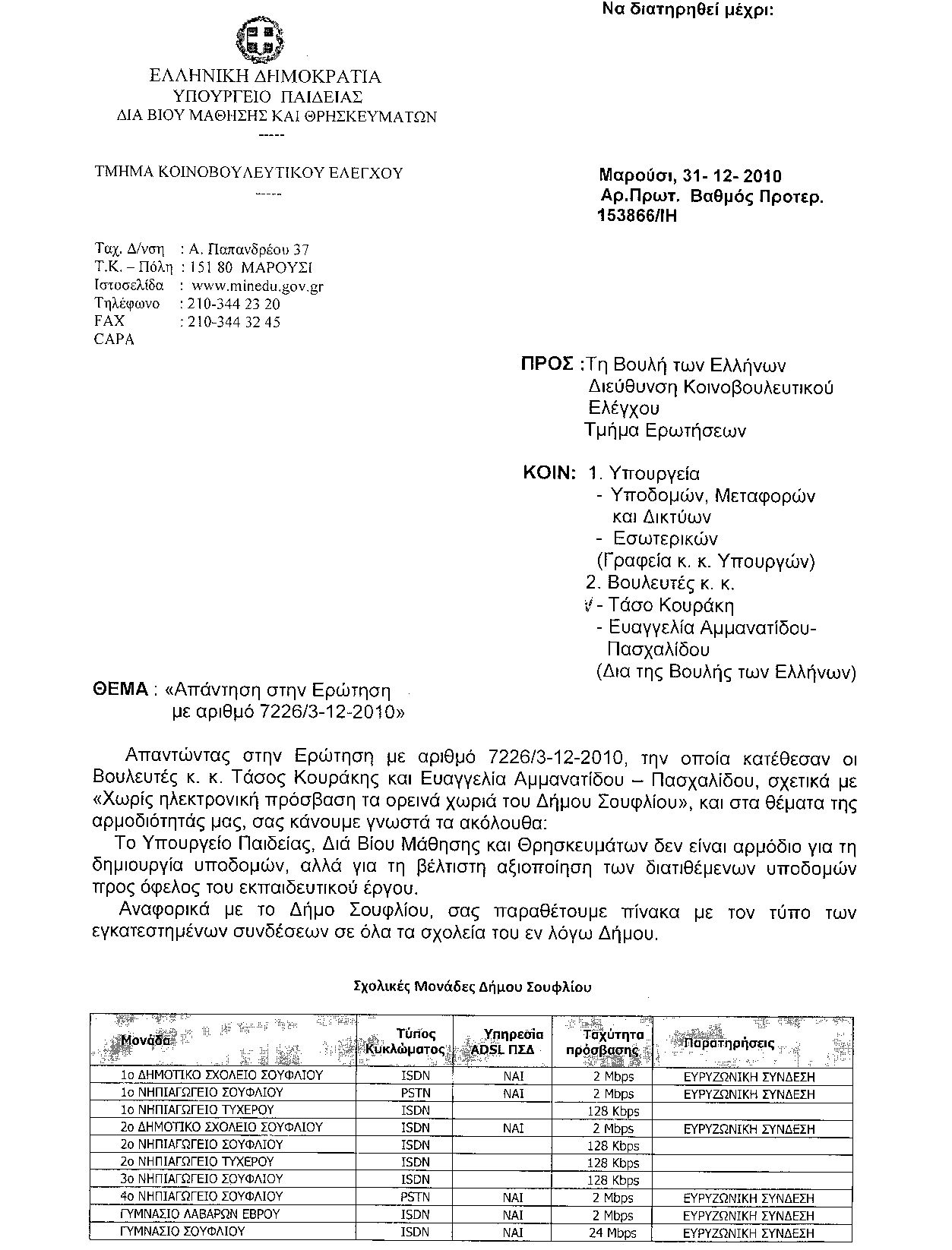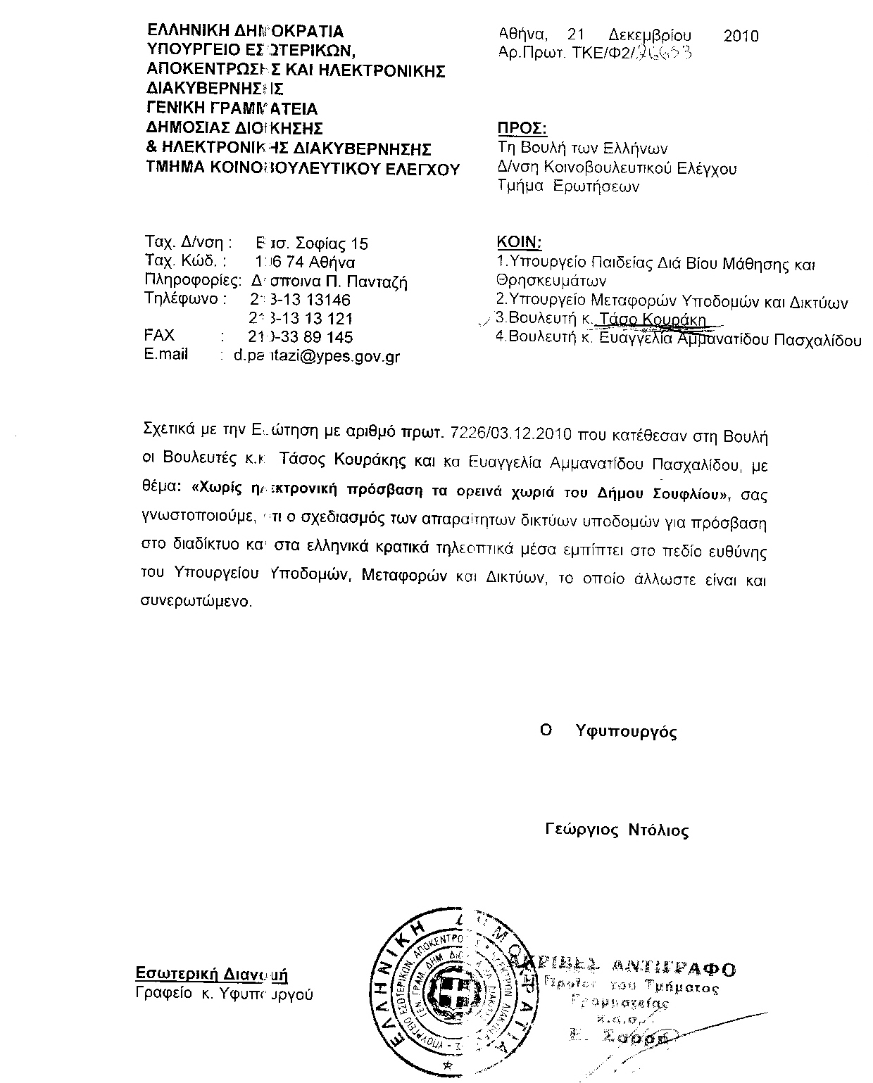 τους Υπουργούς Υποδομών, Μεταφορών και Δικτύων - Εσωτερικών, Αποκέντρωσης & Ηλεκτρονικής Διακυβέρνησης - Παιδείας, Δια Βίου Μάθησης & Θρησκευμάτων