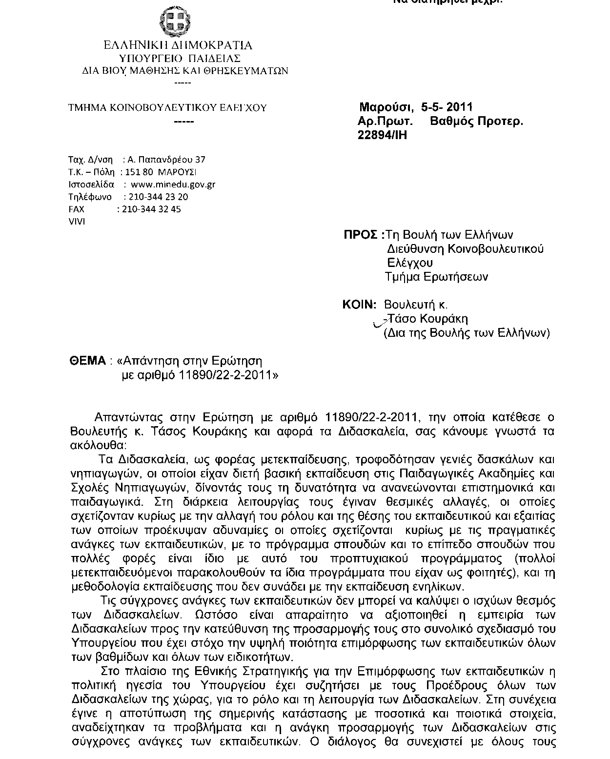 Θέμα δημοκρατίας ως προς τη διαβούλευση, αλλά και θέματα ουσιαστικής κατάργησης δυνατοτήτων επιμόρφωσης και μετακύλισης του κόστους της δημόσιας παιδείας σε εκπαιδευτικούς, γονείς και μαθητές, έθιξε ο Τάσος Κουράκης, βουλευτής και εκπρόσωπος του ΣΥΡΙΖΑ στην επιτροπή Μορφωτικών Υποθέσεων της Βουλής.
