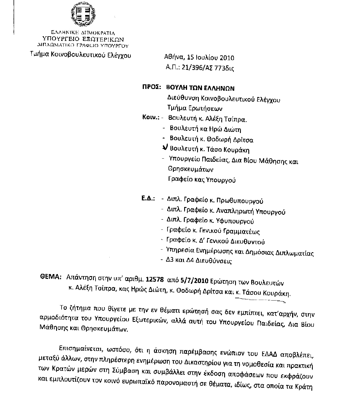 Με αφορμή την απόφαση της Διαρκούς Ιεράς Συνόδου να ζητήσει από το Υπουργείο Παιδείας τη συμμετοχή εκπροσώπου της Εκκλησίας στην Επιτροπή Σύνταξης των σχολικών βιβλίων, ο συντονιστής της ΕΕΚΕ Παιδείας και Θρησκευμάτων της Κοινοβουλευτικής Ομάδας του ΣΥΡΙΖΑ Τάσος Κουράκης έκανε την εξής δήλωση: