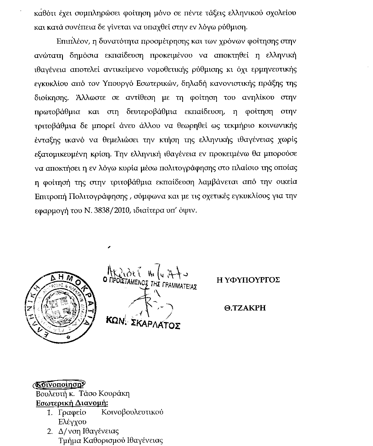 ΑΝΑΣΤΑΣΙΟΣ ΚΟΥΡΑΚΗΣ: Καταρχήν, θέλω να πω ότι το σχέδιο νόμου μας βρίσκει επί της αρχής σύμφωνους, καθ’ ότι πηγαίνει προς την κατεύθυνση –και θα το πούμε πολύ ωμά, θα διαμαρτυρηθεί βέβαια ο λαός- να αλλάξει αυτό που είναι ο ελληνικός λαός. Προφανώς, κάνει αυτό.