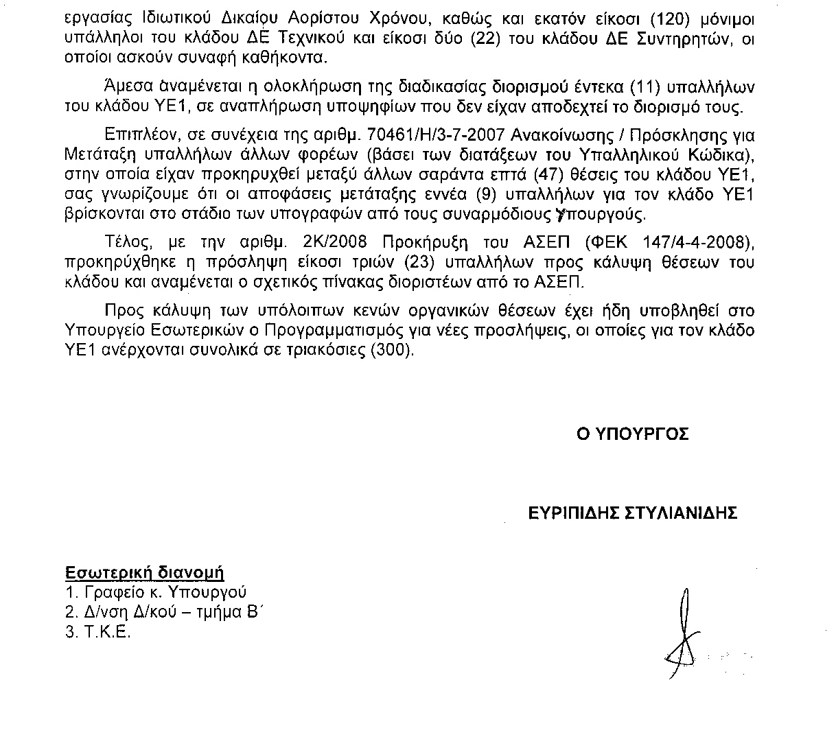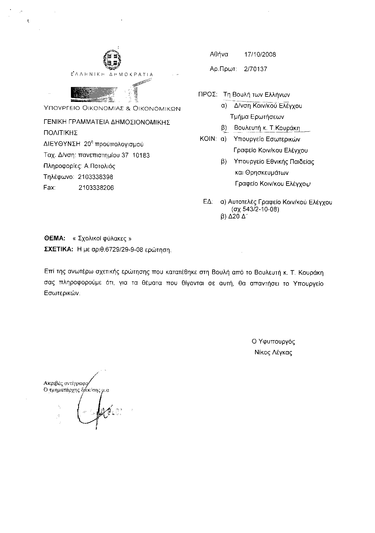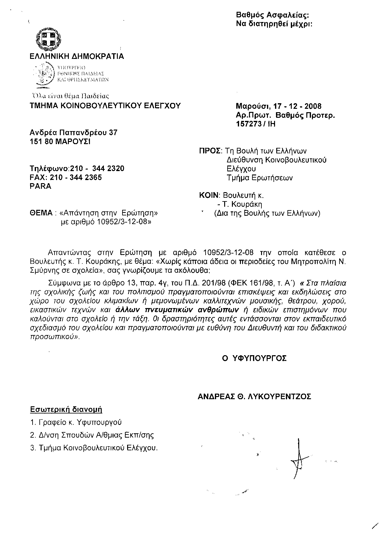 Υπουργούς Παιδείας, Δικαιοσύνης