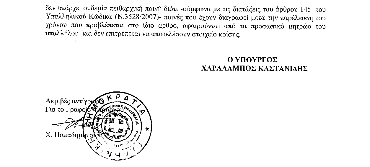 Επομένως εδώ πέρα έχουμε μια πολύ σκληρή επίθεση. Έρχεται σε συμφωνία –και κάνω μία μικρή παρέκβαση- με την καταδίκη του Δημήτρη Πουλόπουλου, αντιπροέδρου του συλλόγου του επιχειρησιακού σωματείου εργαζομένων στις εκδόσεις «Ελληνικά Γράμματα», επειδή υποτίθεται ότι έκανε μία συκοφαντική δυσφήμιση σ’ ένα κέντρο ξένων γλωσσών. Βλέπουμε ότι έχουμε μία βιομηχανία μηνύσεων και διώξεων με σκοπό να ποινικοποιηθεί η συνδικαλιστική δράση.