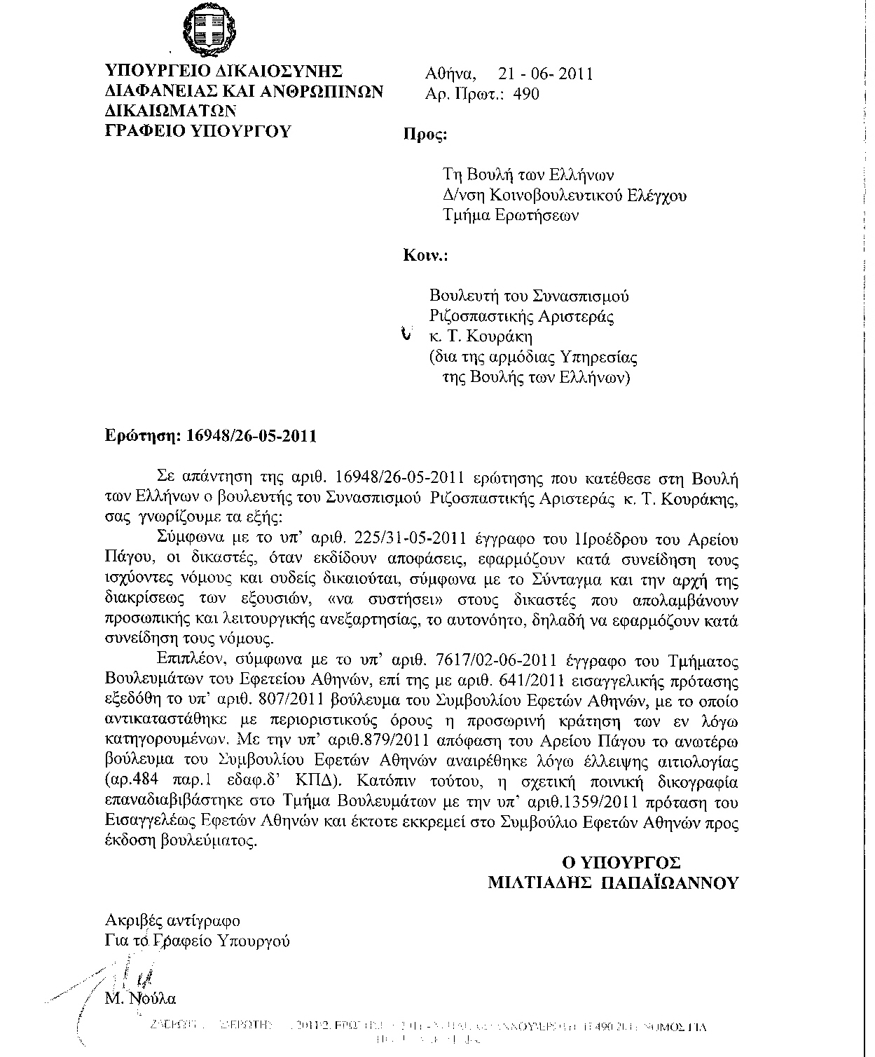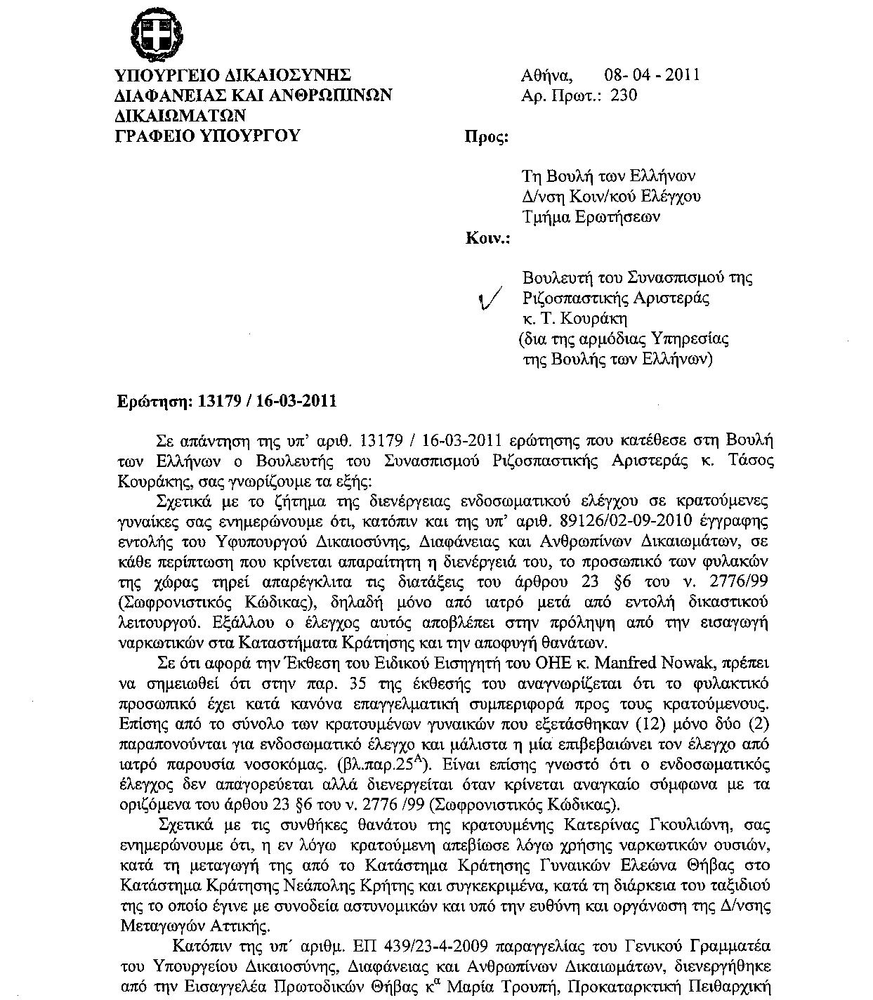 Με αφορμή την ανακοίνωση της Γενικής Αστυνομικής Διεύθυνσης Θεσσαλονίκης για την παραπομπή 17 ατόμων για τα γεγονότα των παρελάσεων, ο Τάσος Κουράκης, βουλευτής του ΣΥΡΙΖΑ και Ζ΄ Αντιπρόεδρος της Βουλής των Ελλήνων, δήλωσε: