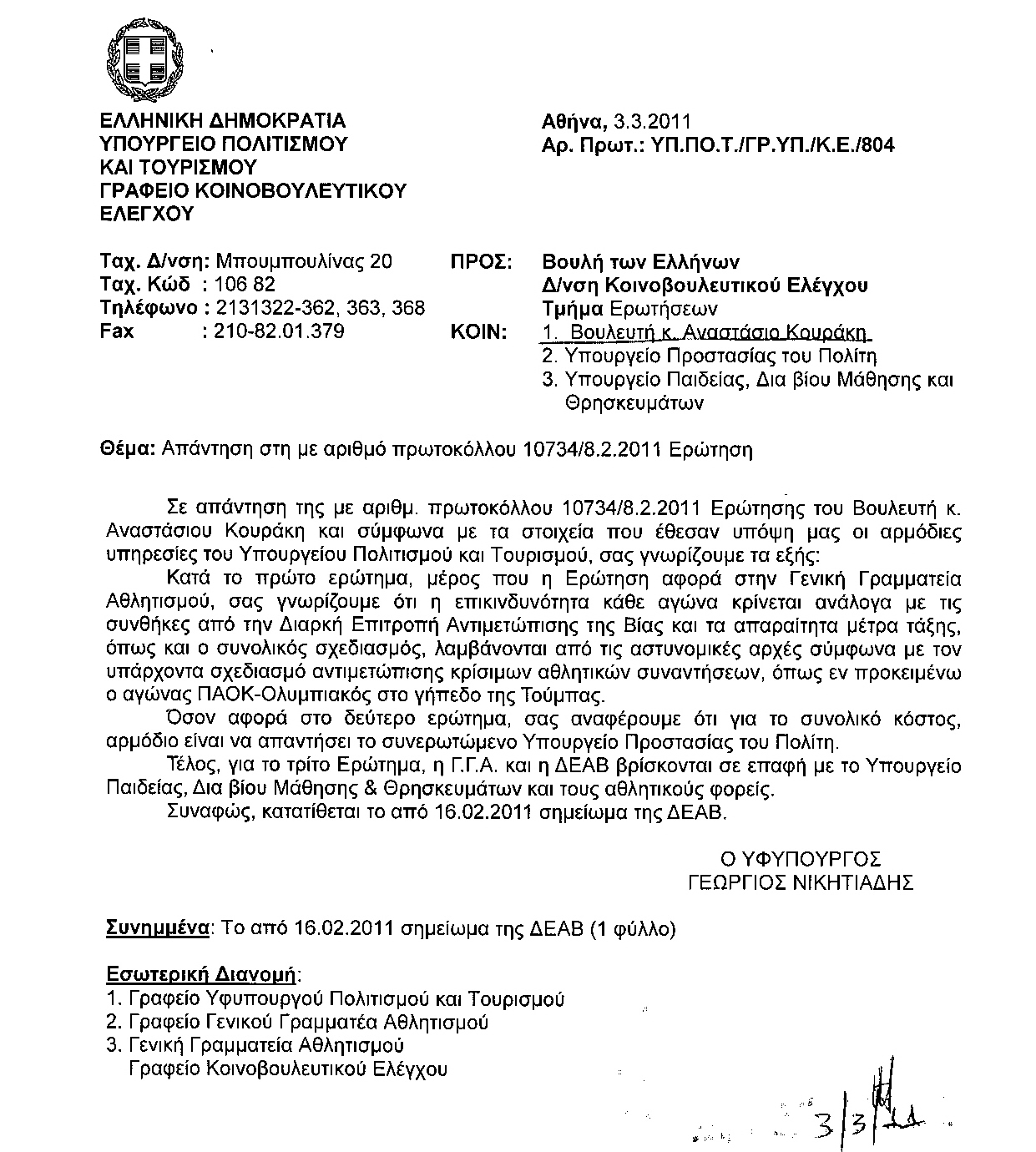 Σε συζήτηση επίκαιρης επερώτησης της ΝΔ που έγινε στην Ολομέλεια της Βουλής, για την ανάκληση της απόφασης ανάθεσης της διοργάνωσης των Μεσογειακών Αγώνων του 2013 στο Βόλο και στη Λάρισα, ο Τάσος Κουράκης βουλευτής του ΣΥΡΙΖΑ και Ζ΄ Αντιπρόεδρος της Βουλής επεσήμανε μεταξύ άλλων τα εξής:
