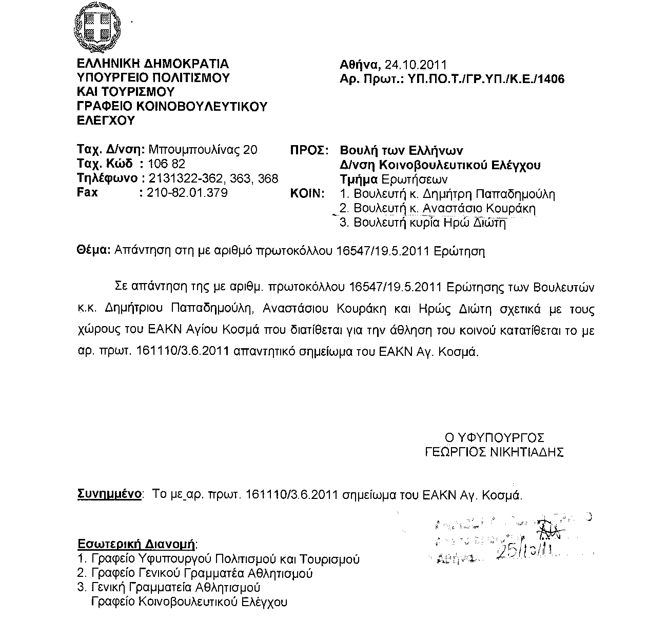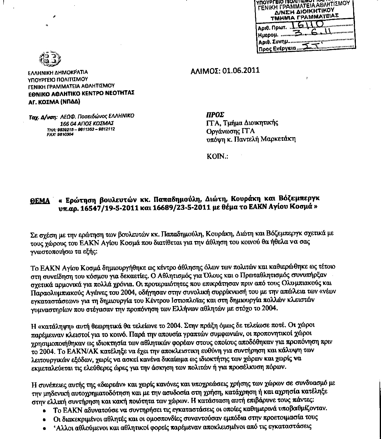 Κατ’ αρχήν, αγαπητέ κύριε Κουράκη, πρέπει να χαιρετήσουμε το γεγονός ότι και εσείς αντιλαμβάνεστε την ανάγκη να ανευρεθούν και άλλες λύσεις πέρα από τη μόνιμη κρατική επιχορήγηση. Όσον αφορά το θέμα που θέσατε σε σχέση με το κτήριο εγώ δεσμεύομαι ότι θα το κοιτάξω. Δεν είμαι έτοιμος να απαντήσω.