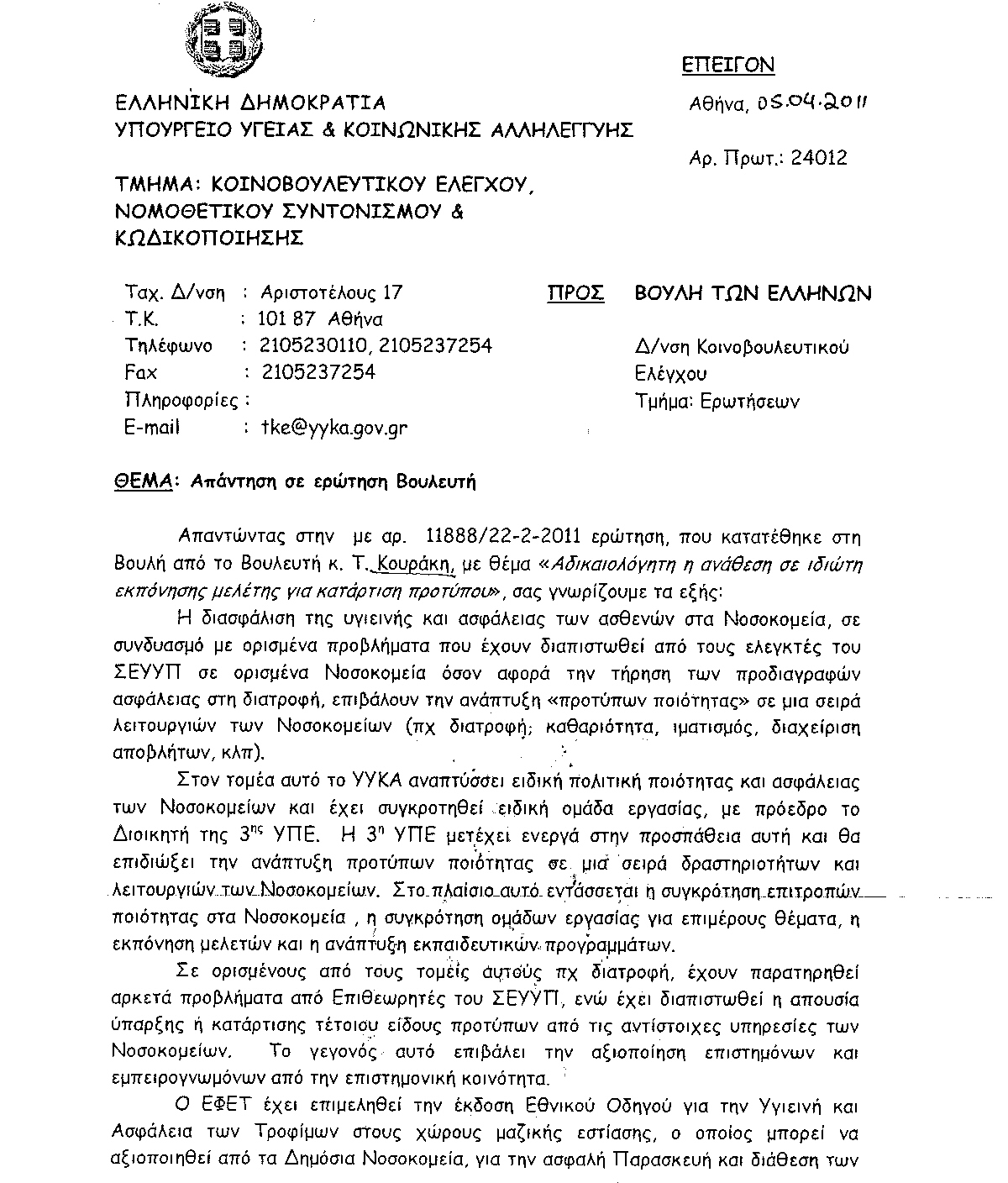 Στη συζήτηση που έγινε στη Βουλή επί της αρχής, των άρθρων και του συνόλου του σχεδίου νόμου του Υπουργείου Υγείας και Κοινωνικής Αλληλεγγύης «Διαρθρωτικές αλλαγές στο σύστημα υγείας και άλλες διατάξεις», ο Τάσος Κουράκης βουλευτής του ΣΥΡΙΖΑ και Ζ΄ Αντιπρόεδρος της Βουλής επεσήμανε μεταξύ άλλων τα εξής: