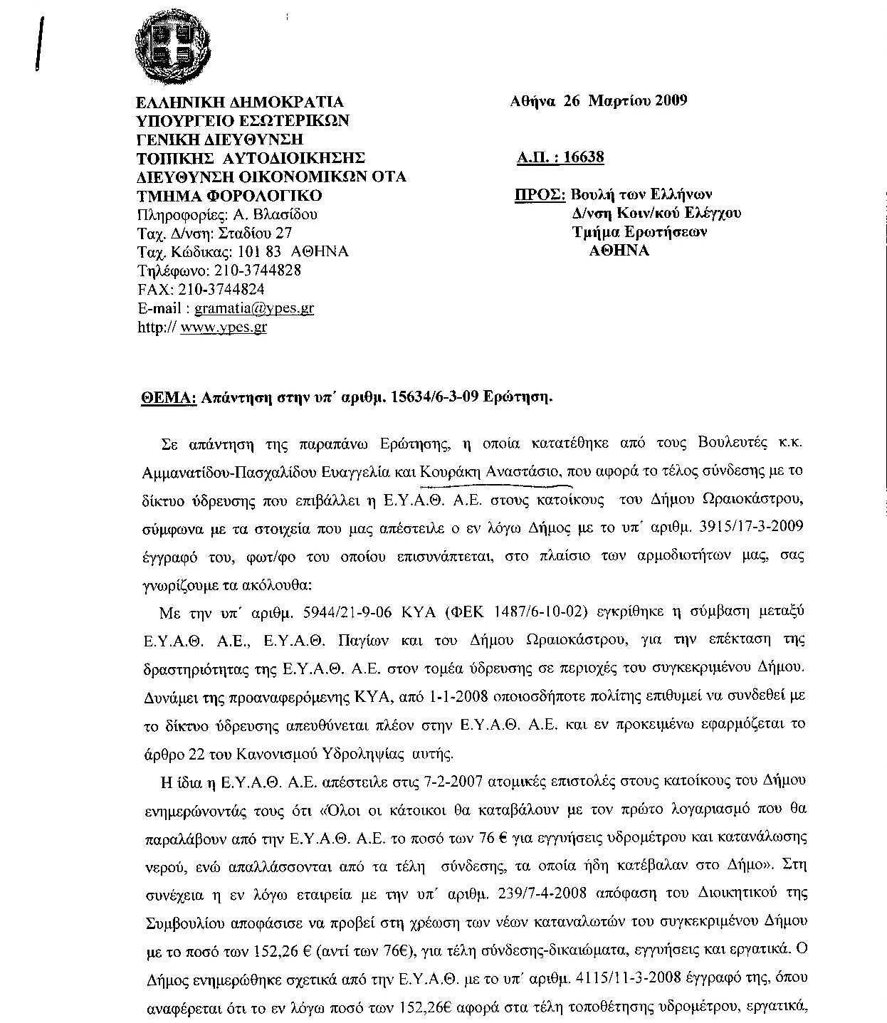 κκ. Υπουργούς, Υγείας και Κοινωνικής Αλληλεγγύης, Εσωτερικών