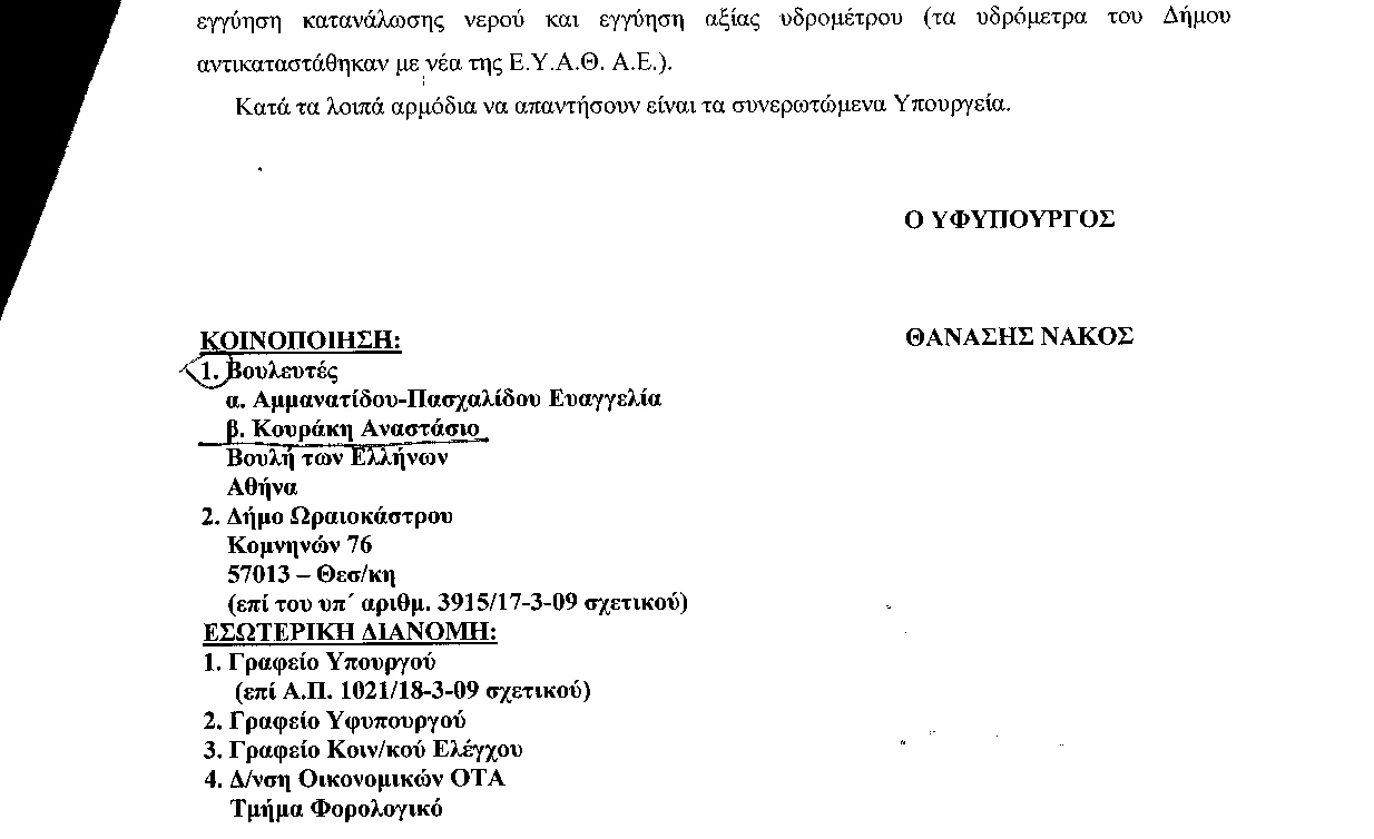 Χαράτσι επιβάλει η ΕΥΑΘ Α.Ε. στους κατοίκους του Δήμου Ωραιοκάστρου
