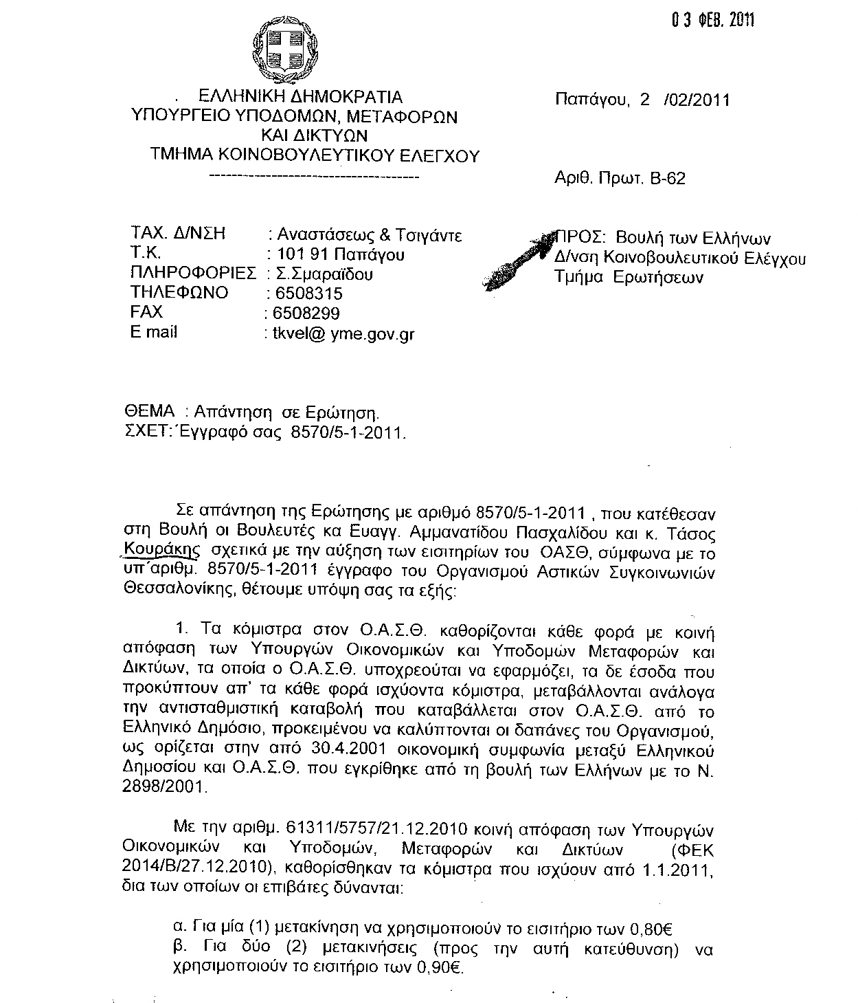 Απαράδεκτες αυξήσεις των εισιτηρίων του ΟΑΣΘ εν μέσω οικονομικής κρίσης.