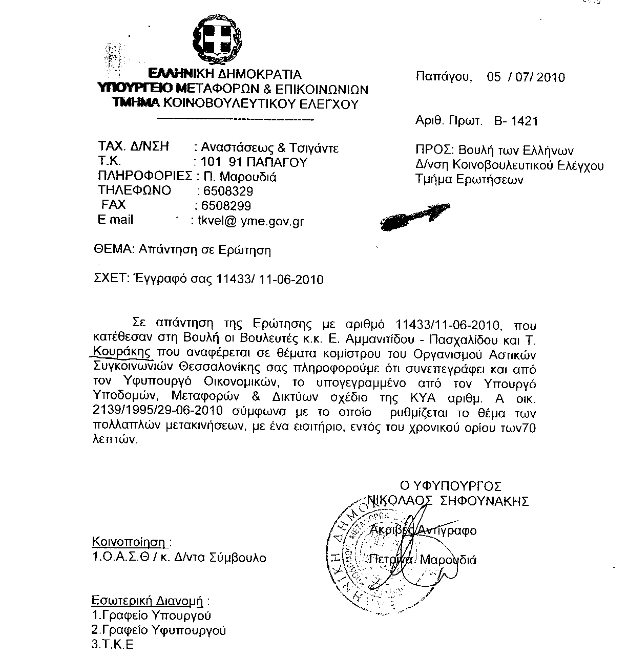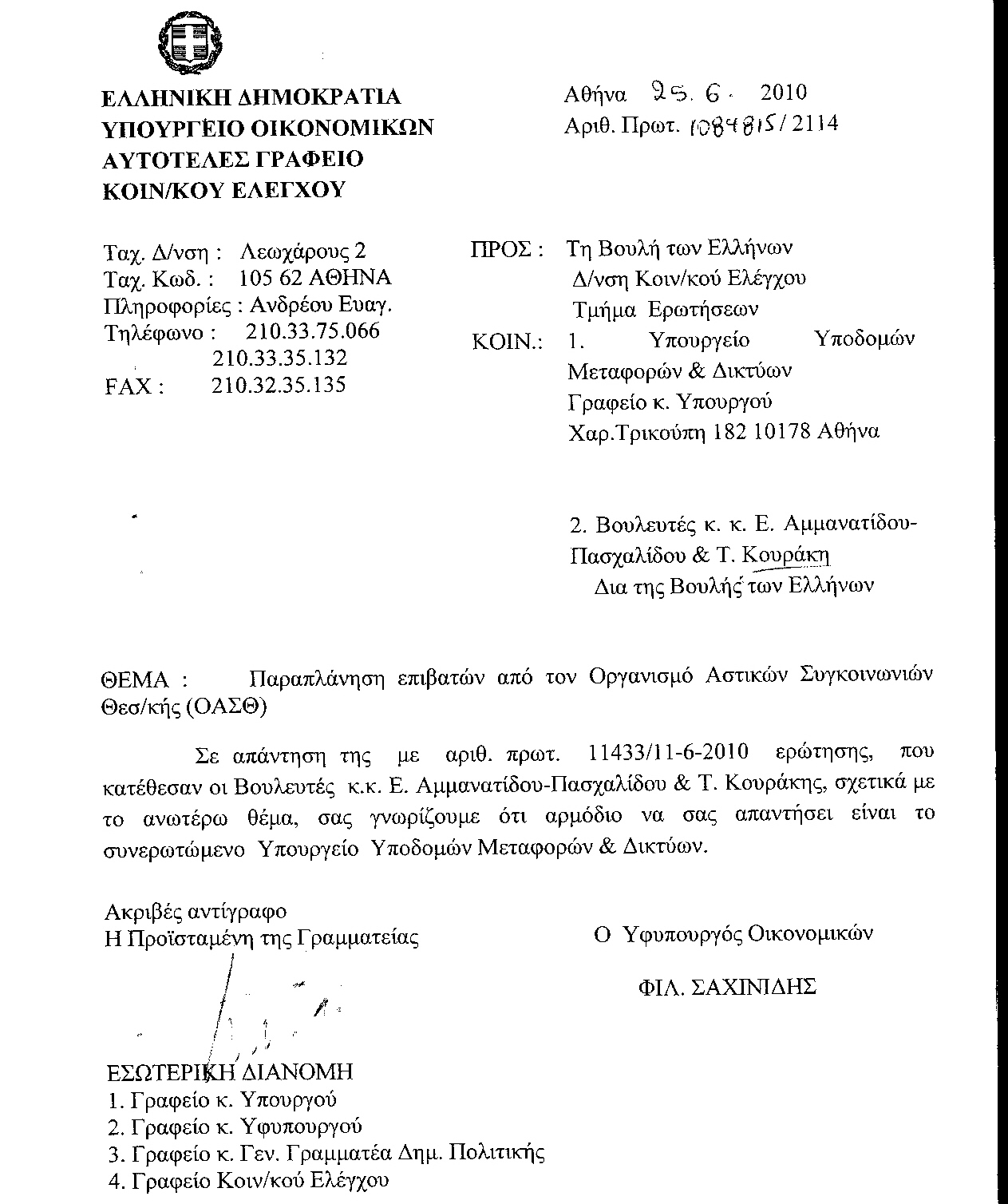 τους κκ. Υπουργούς • Μεταφορών • Οικονομικών